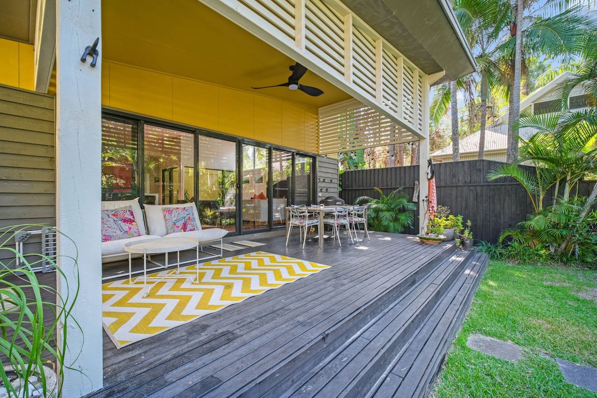 Carinya (meaning "Happy Home") is a stunning large Seal Rocks Beach house located a short stroll to picturesque Boat Beach and No 1 Beach. The 3 bedroom 2 bathroom house in its secluded position has been beautifully furnished for an unforgettable stay. The expansive deck is ideal for a BBQ or lounging around waiting for the dolphins and whales to cruise past. 3 generous bedrooms over one level - 2 king bedrooms and 1 queen bedroom with a bunk bed. Fully renovated bathrooms. Wifi is super fast.