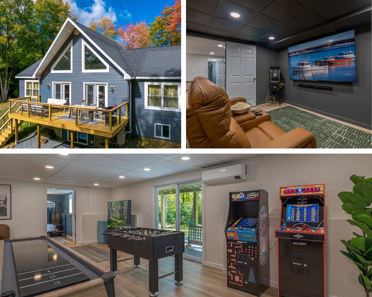 Arcade, teatro, bar loft, deck, acomoda 20+