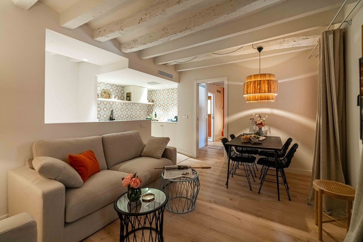 Spacious duplex apartment with a private entrance from the Majorcan patio and from the building's private parking. It has two large double rooms with a complete bathroom en suite, a living room, a dining room, an equipped kitchen and an additional toilet. The patio is private and has a small chill out area. This apartment belongs to the Ramon Llull House accommodation, an old 18th century house renovated and converted into an exclusive accommodation ideal for enjoying Mallorca all year round.