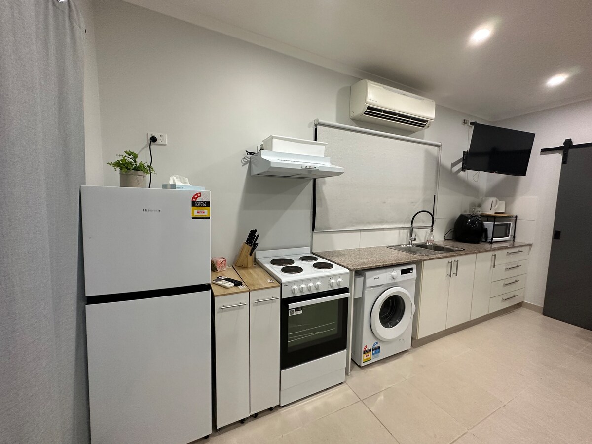 Nossa unidade independente totalmente renovada fica no coração de Nightcliff (a apenas 15 minutos do Darwin CBD). A uma curta caminhada do transporte público, da praia e de restaurantes pop-up ao longo da famosa costa de Nightcliff. O apartamento tipo estúdio em plano aberto contém uma cama queen confortável, área de estar e uma pequena mesa de jantar, micro-ondas e fogão. Toalhas, roupa de cama, louças, talheres, tudo fornecido. Netflix e outros aps na TV. Uma máquina de lavar roupa, varal de chão e varal.