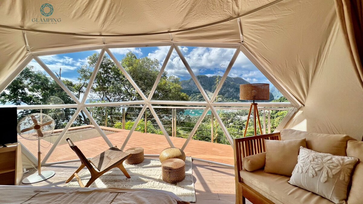 O Glamping Stargazer com varanda e vista para o mar faz parte do nosso resort boutique na encosta, Karuna El Nido Villas. Localizado em uma colina com vista panorâmica para a montanha e para o mar, estamos a menos de 10 minutos de carro do centro da cidade de El Nido e a praia de Corong Corong fica a 5 minutos a pé da rodovia da propriedade. Vistas incríveis, amplo espaço e excelente serviço aguardam os hóspedes. 30 metros quadrados de espaço de estar com varanda aguarda os hóspedes + café da manhã a la carte incluído Esta unidade não pode acomodar animais de estimação.