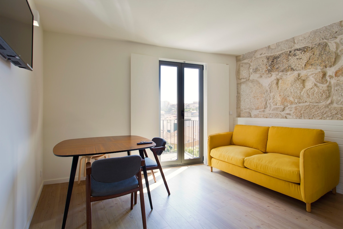 Fabulous premium studio apartment located in the trendiest neighbourhood of Porto's historical city center, between Ribeira and São Bento. NEIGHBORHOOD * Largo São Domingos * Ribeira * São Bento Train Station * Many trendy Restaurants & Bars * Historical and cultural area APARTMENT * 1st floor - no elevator * Wi-Fi * Cable TV * Dining table w/ 4 chairs * Bathroom with bath and hand towels * 1 queen-size bed 180x200