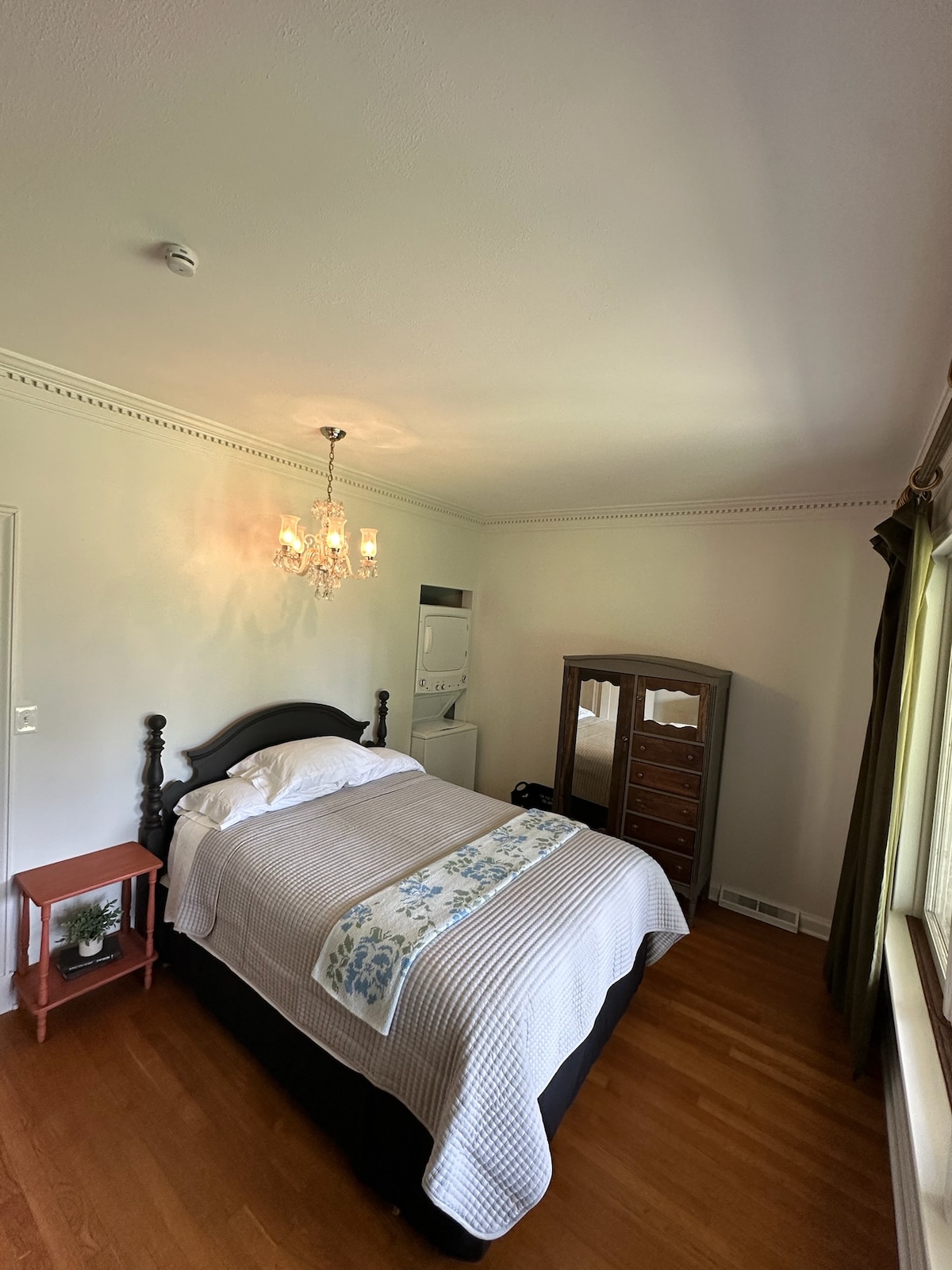 Bem-vindo à nossa suíte artística de 1930, um refúgio único que combina luxo, conforto e arte. Desfrute da banheira de pés original, colchão Stern & Foster personalizado e varanda privativa com vista para o jardim sereno. Cercada por obras de arte únicas, esta suíte que aceita cães apresenta um quintal totalmente cercado para seus amigos peludos. Entrada privativa, uma lavanderia e foco em conforto e relaxamento, como visto na HGTV Hometown temporada 6 episódio 2. Nosso espaço oferece uma estadia verdadeiramente inesquecível.