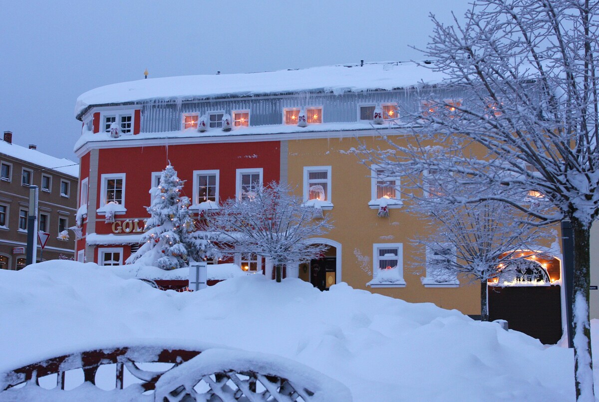 Mais de 500 anos Pátio da cervejaria com elementos históricos do edifício Renovado. Bem no pé das Montanhas Ore, perto de Chemnitz . Dance três vezes por semana. Boliche e restaurante. Aberto todos os dias.