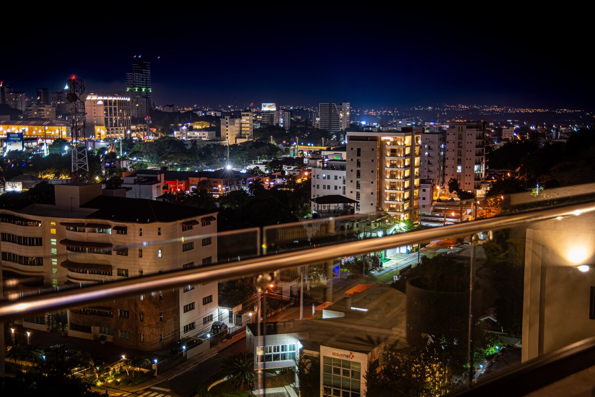 Bem-vindo a um oásis urbano em La Trinitaria de Santiago, ao lado do monumento da cidade. Desfrute do nosso novo apartamento 2QT com ar-condicionado. Cada quarto tem vista para a cidade, camas confortáveis e TVs (65” na área de estar, 55” nos quartos). Nossa cozinha está totalmente equipada, ou explore a culinária local nas proximidades. O Supermercado Bravo fica a um quarteirão de distância para qualquer necessidade. Dê um mergulho na nossa piscina ou vá para a academia. Lojas, cafés e atrações estão a uma curta distância a pé. Experimente a vida na cidade no nosso paraíso de Santiago.