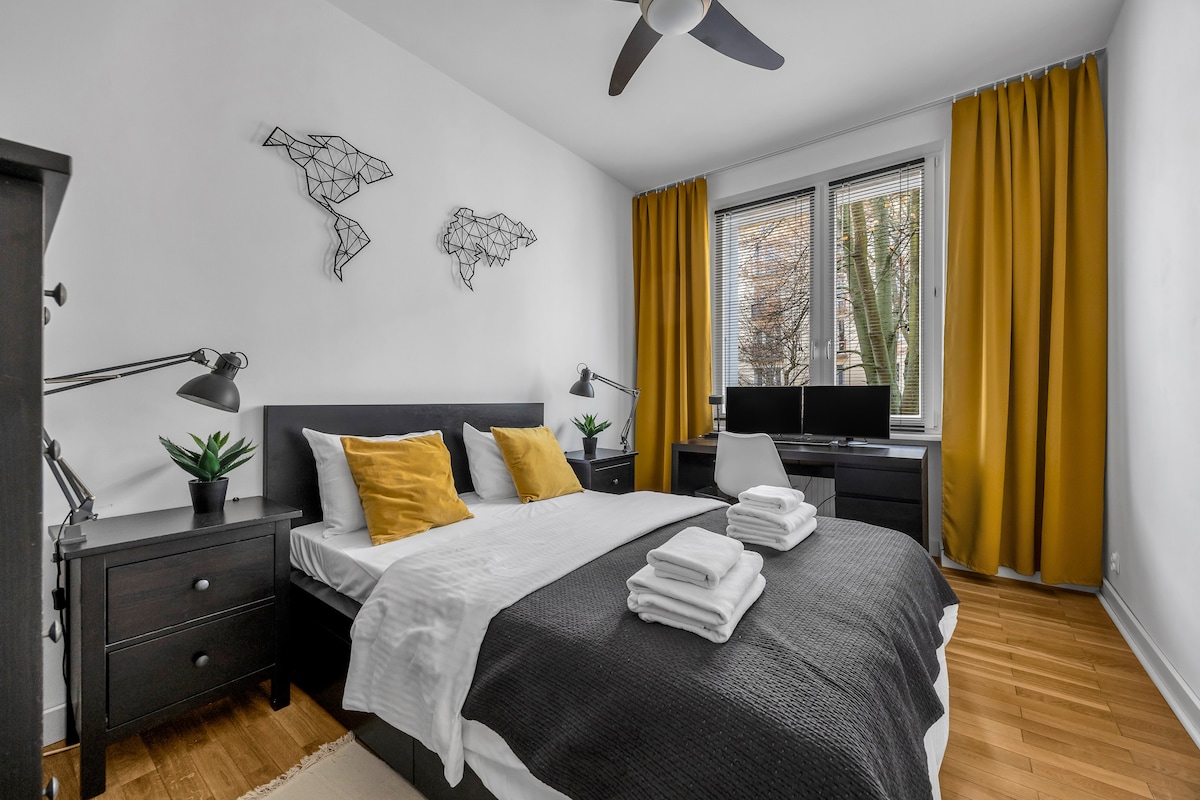 O belo e tranquilo apartamento GRIS de 45m² na Plac Unii Lubelskiej com muitas comodidades para estadias mais longas ou curtas. Cama confortável, banheiro aconchegante, cozinha gourmet, uma espaçosa sala de estar, ar condicionado no verão e Wi-Fi rápido tornam a solução perfeita para viajantes de negócios ou lazer que buscam o conforto de um bom hotel, mas com independência. Excelentes conexões com o centro da cidade e a Cidade Velha, perto do metrô, restaurantes, bares, cafés e um shopping center, e apenas a uma curta caminhada do Parque Rotal Łazienki.