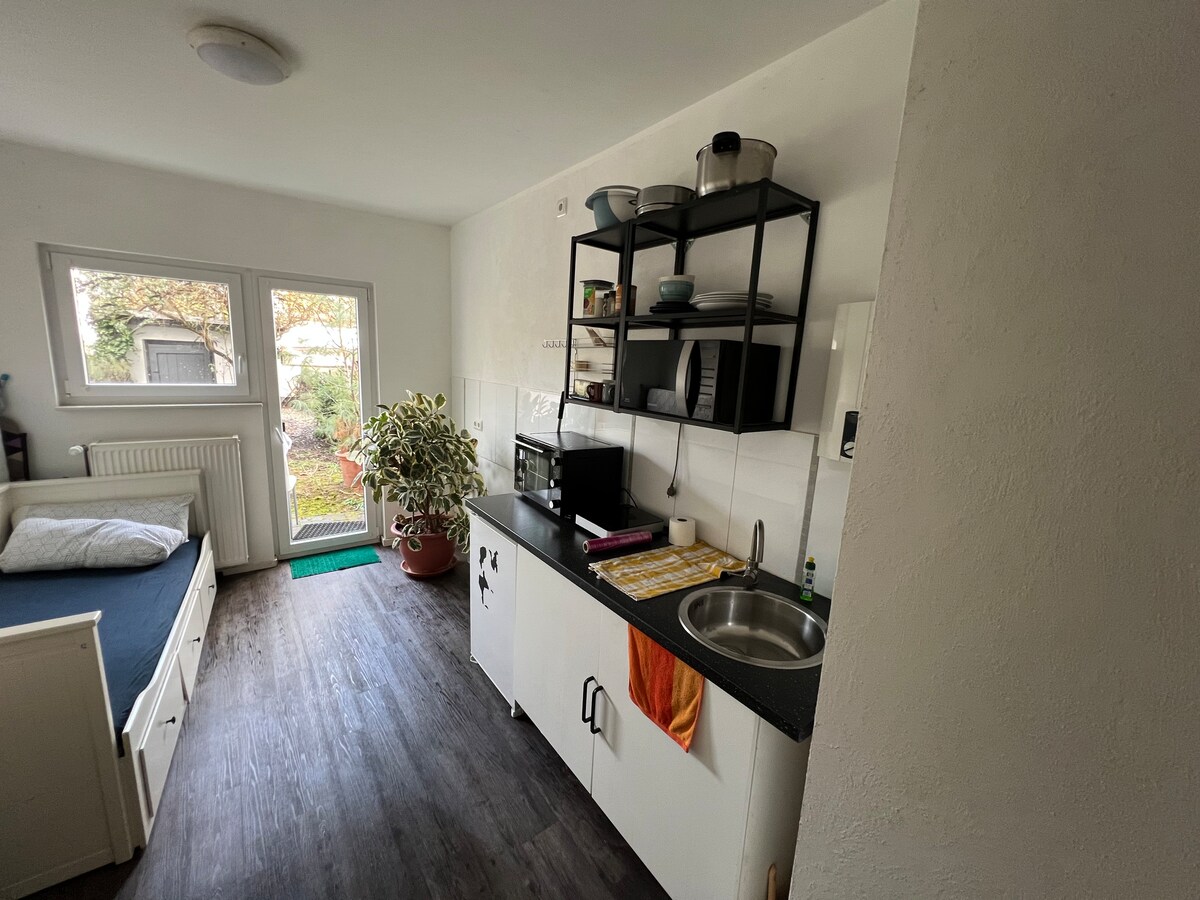 Bem no centro e ainda assim em uma área tranquila. Entre o Geropark e a histórica muralha da cidade, exatamente no Abteiberg, está o pequeno, mas agradável apartamento. "O lugar para estar", na parte mais bonita da cidade velha. O shopping "Minto" fica a poucos metros de distância. Há uma conexão rápida com as rodovias. A estação principal está a 15 minutos a pé e o "jardim colorido" a apenas 10 minutos. O Borussia Park fica a apenas 4 km de distância e com os ônibus você chega rapidamente ao subúrbio.