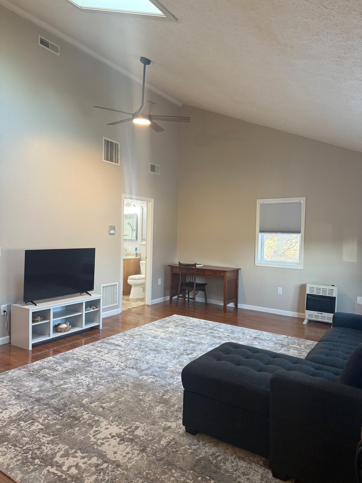 This cottage was once the washhouse for the adjoining 1790's farmhouse and has been recently renovated into a cozy retreat, overlooking the quiet fields and rolling mountains of Boiling Springs. The queen bed in the loft and double bed in the back room offers flexibility for a quick getaway or long-term stays. Head to the private deck for a meal and view of the sunset in the evening. Carlisle is just up the road and Harrisburg is only a 25-minute drive. Come and be refreshed.