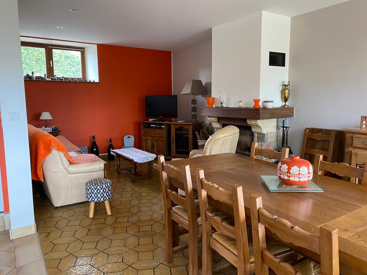 Acomodação confortável mobiliada na fazenda, muito espaçosa (cerca de 90 m²) e tranquila no meio do Vale de Vire. Você ficará hospedado em um grande espaço confortável no campo, cercado por animais de fazenda e a 200 metros do Vire com vista panorâmica para o vale do Vire. Base de canoagem nas proximidades. Um lugar natural e montanhoso, para os amantes da natureza e dos animais. Ideal para caminhadas, ciclismo, passeios a cavalo... Possibilidade de acomodar dois cavalos no prado.