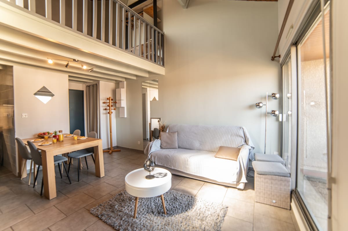 Appart T1bis+ mezzanine, Clim, parking, terrasse,