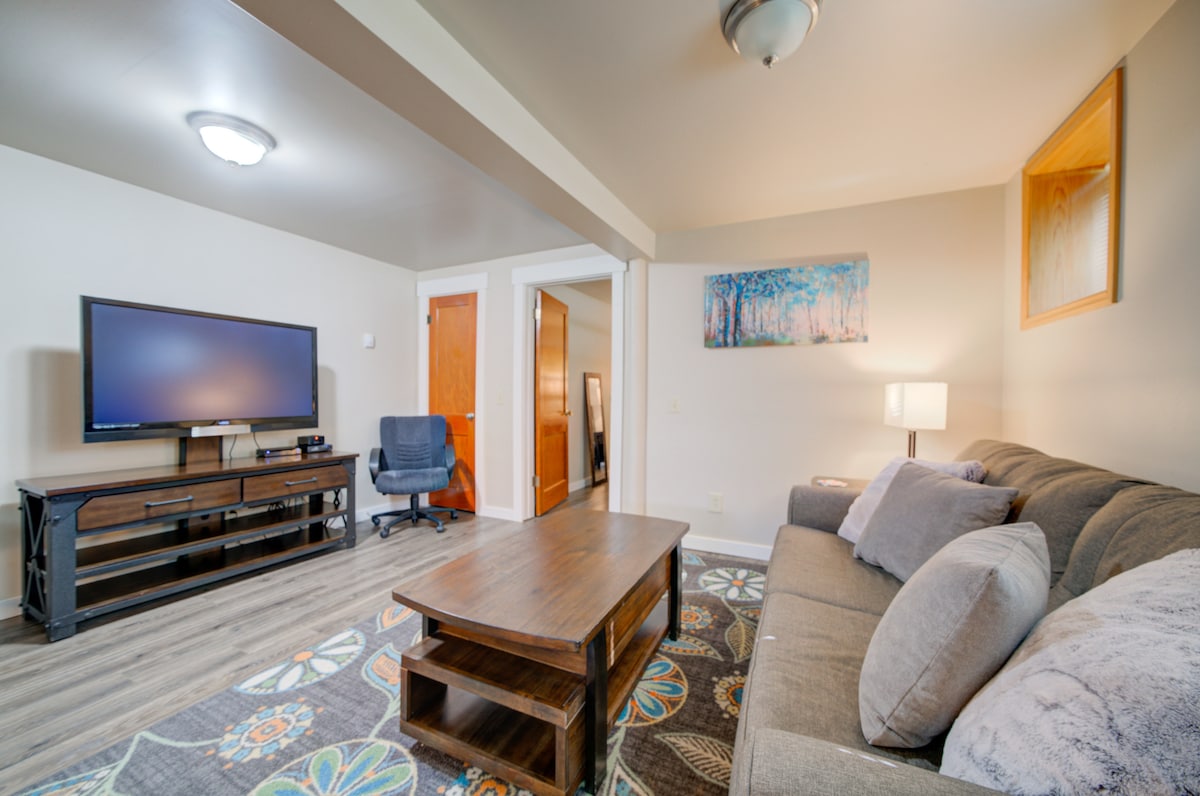 Sua própria entrada privativa com um quarto com cama queen size mais uma sala de estar com sofá/cama futon e um banheiro. A sala de estar tem TV smart, aparelho de som bluetooth. Esta habitação no 2º andar não tem instalações de cozinha, mas está localizada em um bairro tranquilo a apenas 2 quarteirões de restaurantes, lojas e vida noturna no centro de Bozeman. Área de entrada bônus com geladeira, cafeteira/chaleira, água filtrada. Muitos copos, pratos e utensílios estocados para refeições que não requerem cozimento. -STR23-00001