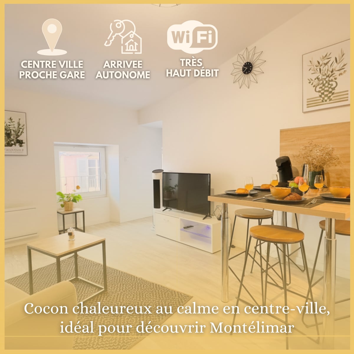 Bem-vindo a este casulo completamente renovado, localizado no coração de Montélimar. A poucos passos da rua de pedestres Pierre Julien, do castelo histórico e das lojas, tudo está a uma curta distância a pé. O apartamento oferece um quarto com cama de 140x200 e uma sala de estar com sofá-cama confortável, ideal para até 4 hóspedes. Cozinha totalmente equipada, roupas de cama e toalhas são fornecidas. Estação ferroviária a 7 minutos a pé, supermercado a 30 segundos. O lugar perfeito para uma estadia agradável, prática e sem estresse. Ideal para trabalho, relaxamento e uma escapada profissional