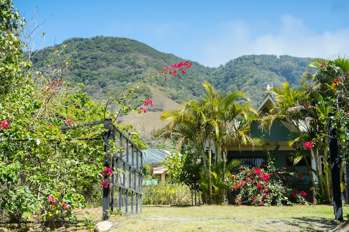 Situada em uma fazenda de 6 hectares, esta casa foi construída recentemente como um refúgio na natureza — um refúgio tranquilo cercado por vegetação exuberante, colinas e vistas deslumbrantes do Golfo de Nicoya. Assim que chegar, você sentirá a serenidade da Floresta Nublada da Costa Rica. Deixe seus ouvidos se sintonizarem com o canto dos pássaros e a conversa ocasional dos macacos nas árvores... Este é um espaço para descanso, reconexão e inspiração — seja assistindo a um pôr do sol de tirar o fôlego do terraço ou caminhando pela trilha no local.