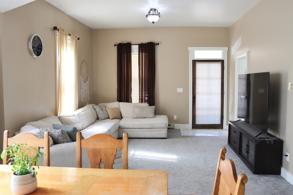 Tranquil countryside retreat on 4 acres of juniper woodland. With 3 bedrooms and two bathrooms, Meadowlark is perfect for families, friends, or work teams. Stunning mountain and farmland views from 2 decks. Just 7 mins to historic Las Vegas, NM, and 1 hr to Santa Fe. Birdwatcher's paradise near wildlife refuge trails (5 mins) and Montezuma Hot Springs (20 mins). Stargaze, hike, unwind. Well-behaved pets welcome ($75 per stay). A peaceful escape to reconnect with nature and yourself.