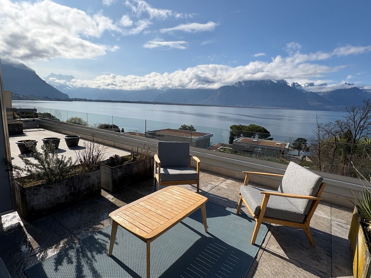 💝 Welcome to your bright, brand-new 55 m² loft on Lake Geneva, just 5 minutes from Montreux. Ski resorts within 35 minutes (Villars, Leysin, Diablerets), thermal baths Lavey 20 minutes away. 🏡 Located on the 2nd floor with elevator of a small building completely rebuilt in 2025, this chic and modern loft comfortably hosts up to 4 guests, featuring a private balcony with a breathtaking lake and mountain view. you’ll instantly feel at home. 🅿️ + Public transports 1-2 minutes by walk.