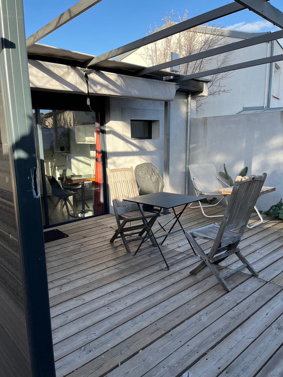 Dependência de 27 m², tipo suíte master ao lado da nossa casa. Piscina compartilhada com a casa. Entrada privada sem parede adjacente à casa Um terraço com mesa sob a pérgula está reservado para você. Roupa de cama à sua disposição. Não é um estúdio, então não há uma cozinha real ou pia. No entanto, o espaço na parte de trás está equipado com uma geladeira/freezer, microondas, cafeteira, torradeira, louça. Açúcar, chá, cápsulas de café disponíveis.