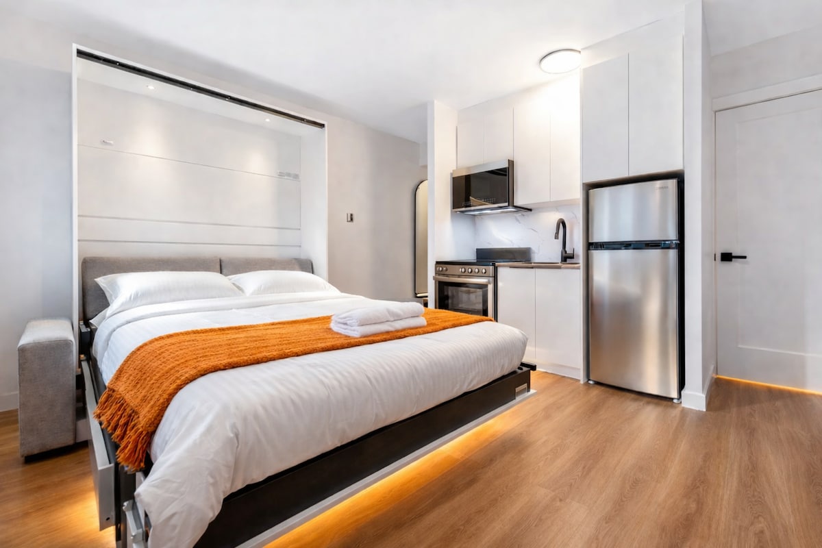 Bem-vindo à sua casa moderna e confortável em Montreal. Este apartamento de 2 quartos cuidadosamente projetado oferece o equilíbrio perfeito entre estilo, conforto e conveniência. Com interiores brilhantes, acabamentos de qualidade e todos os itens essenciais, é uma escolha ideal para viajantes de negócios, famílias ou hóspedes que procuram uma estadia tranquila e agradável. Se você está visitando a trabalho ou lazer, este apartamento oferece um espaço calmo e acolhedor para relaxar depois de um dia explorando a cidade.