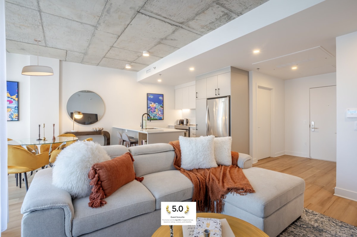 Aproveite sua estadia no coração da cidade! Novo TDC 2 luxo no centro da cidade com acesso direto ao Bell Center! Delicie-se com conforto em nosso apartamento de um quarto totalmente mobiliado e equipado com varanda privativa própria! Sua estadia inclui acesso a sauna, piscina, academia, skylounge, sala de jogos, lounge e terraço com várias churrasqueiras. Estacionamento subterrâneo gratuito, com o metrô a poucos minutos de distância. Sem sair de casa, a cidade é sua para explorar. Além disso, relaxe com Netflix gratuito para a estadia perfeita