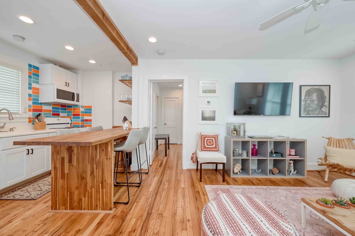 Localização, localização, localização - nossa moderna pousada fica bem no meio do histórico Heights, a apenas uma curta distância da 19th St. e da trilha Heights Hike & Bike Trail. Seja hospedando-se por uma noite ou viagem prolongada, você vai se sentir em casa com uma cozinha totalmente equipada, cama king size, TV inteligente de 65 polegadas + cabo de streaming, Wi-Fi de alta velocidade, lavadora/secadora, estacionamento fora da rua e entrada privativa.