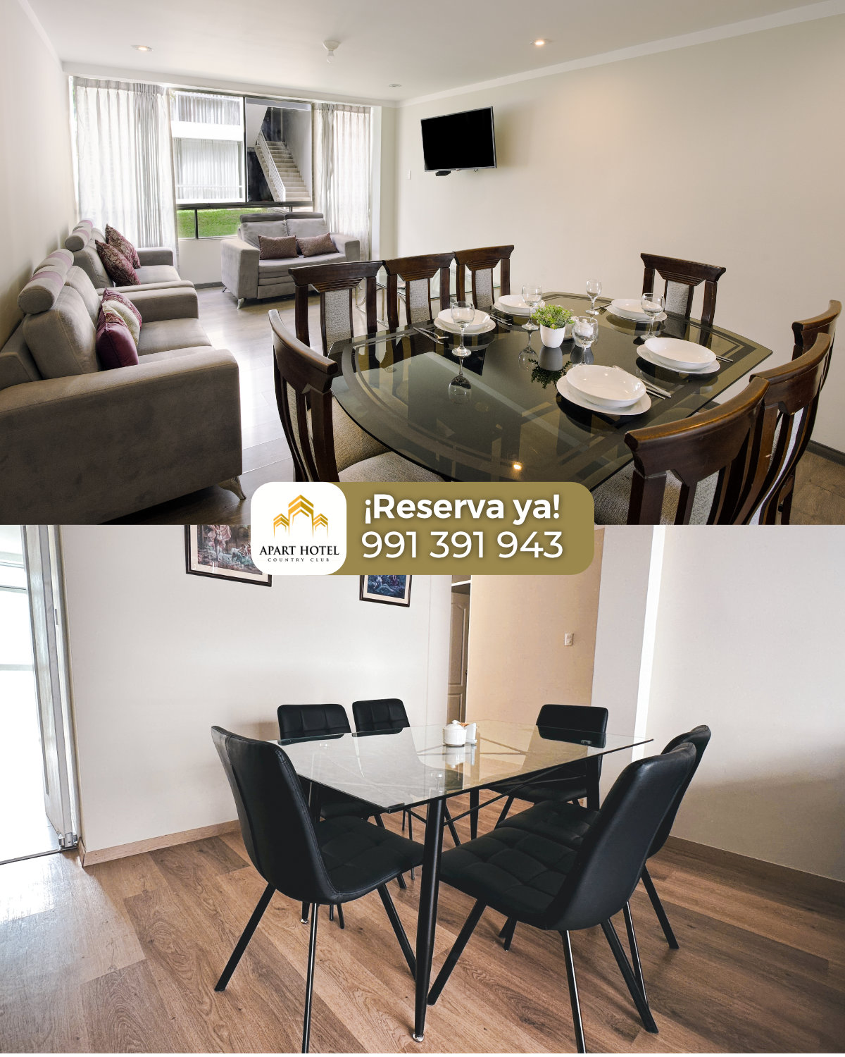 Departamentos completamente amoblados en la residencial del country club, a una cuadra y media con vigilancia 24 horas, para que tu estadía sea segura. No olvides que tenemos acceso al club más exclusivo de la ciudad, La Villa Country Club Moquegua donde podrás disfrutar de piscina ( 9am a 5pm) restaurant (8 am a 4pm), área de parrillas( previa reserva), área de juegos ,spa ( previa reserva y pago). horario de atención de 8am a 6pm