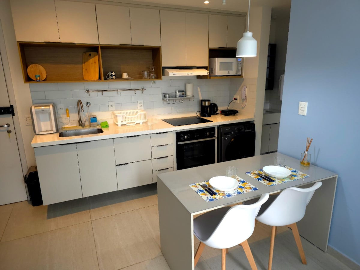 Excelente apartamento Moderno, 100% equipado e muito bem localizado, próximos ao shoppings Morumbi e Market Place, a 100 metros do Consulado Americano. Atende até 4 hóspedes. O Apartamento possui: - Ar condicionado - Cozinha Completa (Geladeira, Microondas, Fogão (por indução), Air Frier, purificador água, Nespresso, tostex e utensílios) - Quarto com cama queen - Sofá cama casal - Wifi - TV 55' - Garagem coberta - Piscina aquecida, Sauna e Academia - Condominio com Lavanderia e Mercado Hirota