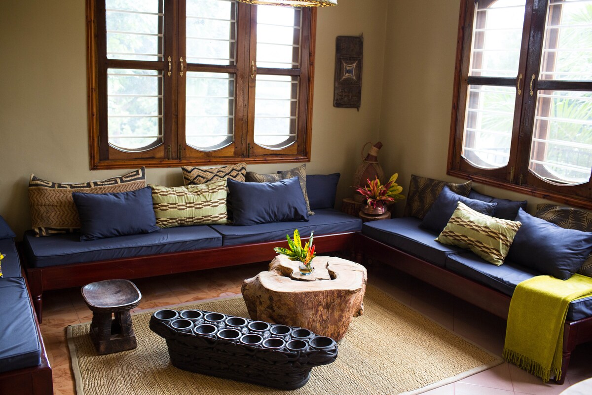 A casa de família privada de Jambo é uma casa imponente do estilo de vida de classe média alta de Moshi. Com um passado colorido de celebrações sociais familiares vibrantes, a casa de 3 quartos fica em um complexo de 2 casas, com vista para armadilhas ricas de um estilo de vida familiar mais do que modesto. Quartos espaçosos com móveis artesanais que apoiam artesãos e empresas locais, um sabor autêntico de estilo africano. Perto da cidade, mas em meio a casas de família, onde o dia a dia a vida tanzaniana se desenrola