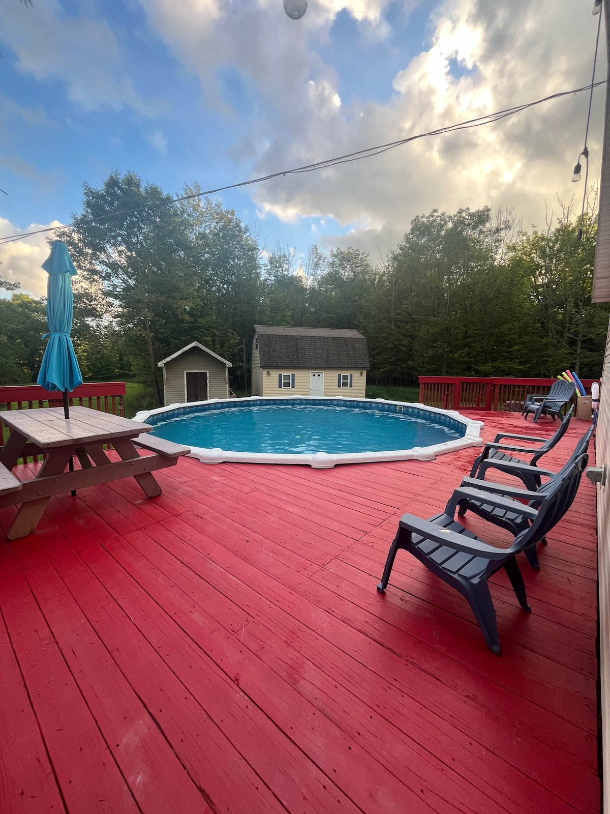Um lugar encantador para relaxar no campo rural. Aproveite o ar fresco do campo e observe o gado vizinho. 6 milhas até o Lago Wallenpaupack. Trilhas de caminhada nas proximidades no Santuário de Lacawac, Schumans Point e conservação de Varden. Passeio a cavalo no estábulo Why-Not. Lojas de antiguidades e boutiques na histórica Hawley e Honesdale. Menos de 48 km até Montage Mountain Resorts, Elk Mountain, Ski Big Bear e Shawnee Mountain Ski Area. Todos os quartos ficam no 2º andar. Banheiro completo no 1º andar.