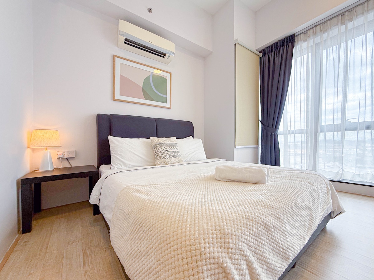 O estúdio PEACE fica perto do MidValley Megamall! Tranquilo, acolhedor, unidade de canto, andar alto no VIVO Suites@9 Seputeh. Tenho muito orgulho em criar este espaço com♥. Desfrute de um lar longe de casa, seja você um viajante de negócios ou visitando a área. Internet de alta velocidade com Netflix. Estacionamento gratuito. Piscina de borda infinita em reforma, mas academia, sala de estudo/reuniões, parque infantil, sala de jogos (ótima para crianças) e sauna a vapor compartilhada por apenas 247 unidades. Um pequeno parque e 7eleven no térreo.