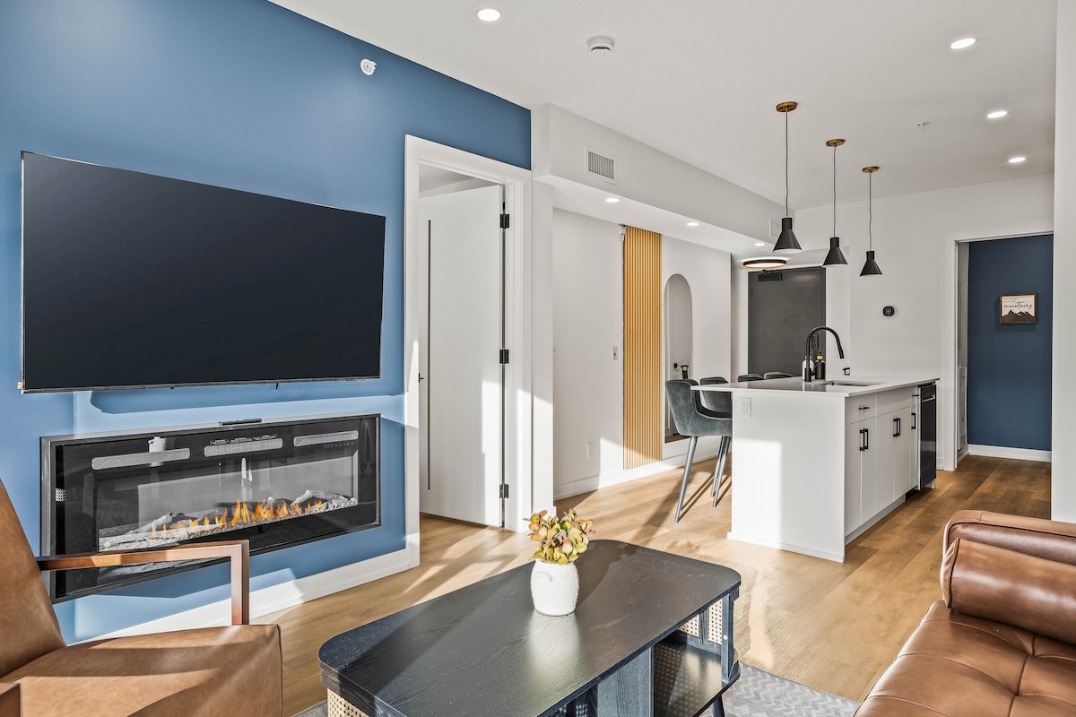 Blue Moose is a newly updated and furnished, spacious luxury one-bedroom condominium with king -sized bed and queen sofa bed. New for 2025: major bathroom and kitchen upgrades. PERFECT LOCATION This modern mountain retreat is situated next to a pristine mountain creek. Follow a creekside nature trail and within minutes you are in downtown Canmore with trendy shops, cafes, food trucks, and both casual and upscale dining.