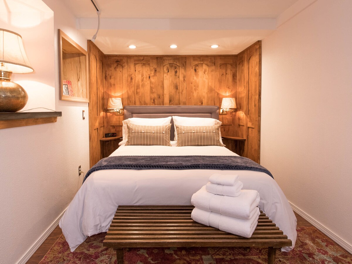 Our guest house is a completely private space, accessible by an outdoor walkway, and has an outdoor patio. We designed the space to be light-filled, feel cozy yet roomy, fitting a lot into a small space. Vaulted ceilings, a ceiling fan, full kitchen, bathroom, a bed alcove with a comfy queen mattress and soft bedding and lots of extra touches. Our 335 sq ft guest house is fitted with all you'll need for your time in Portland.
