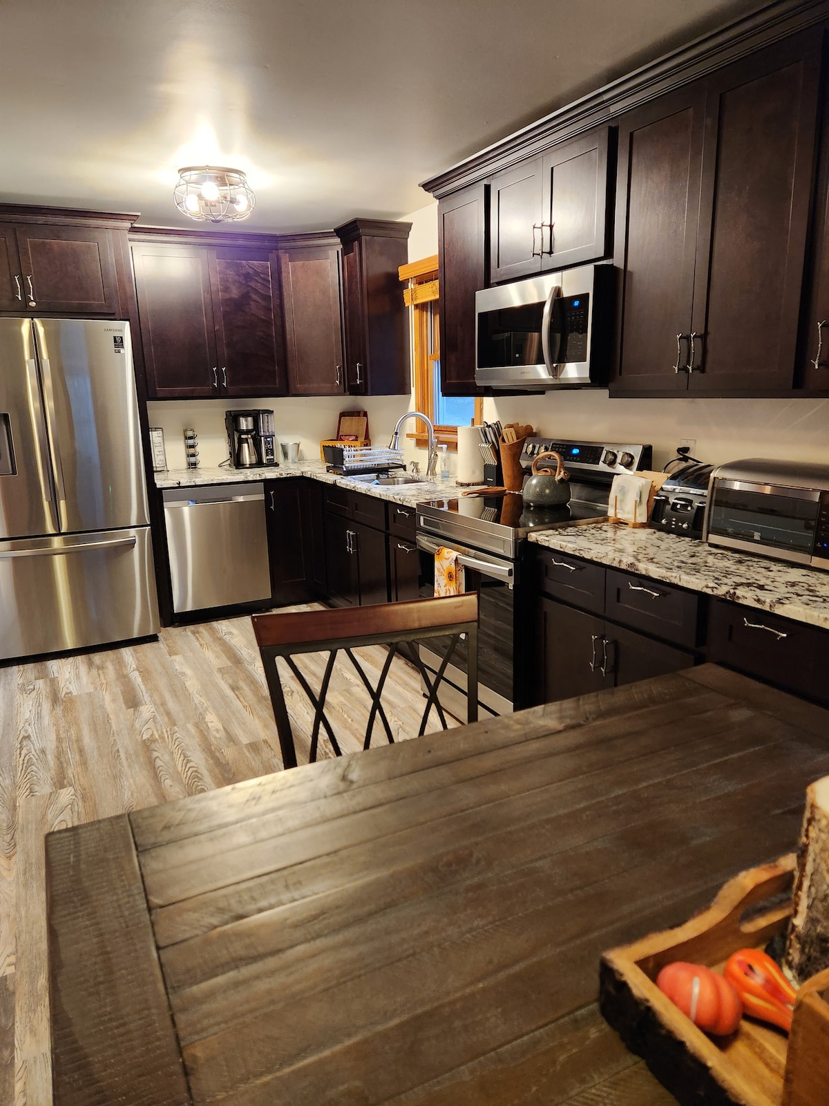 O Timber Haven Chalet é um refúgio isolado e privado para família e amigos, localizado a 4 milhas do centro de Lake Placid. As recentes reformas de toda a casa fizeram deste um maravilhoso local de férias. A localização é perfeita para caminhantes, esquiadores cross-country e a poucos minutos de todos os locais olímpicos. A área de estar principal tem pisos de madeira, teto abobadado, uma lareira a gás no andar de cima, TV e uma cozinha totalmente equipada. Portas deslizantes duplas se abrem para o grande deck rústico que possui uma vista fantástica da Montanha Whiteface no inverno, mesa com recurso de fogo e uma churrasqueira a gás Weber. Há 2 quartos neste nível com camas tamanho queen, cômoda e um armário forrado de cedro personalizado em cada quarto. Há um banheiro completo neste nível (atualizado em 2024). O nível inferior inclui uma lareira a gás e uma cama Queen com uma TV Roku, um banheiro completo com chuveiro de azulejos e banheira de imersão (reformado em 2024). Portas francesas no nível inferior saem para o quintal. Há um pátio de tijolos sob o deck que dá para a fogueira do quintal. A propriedade tem um caminho curto que leva à Jackrabbit Trail para esqui cross-country de inverno e se conecta ao Craigwood Golf Course. A casa fica em um terreno arborizado de 2 acres. 4 milhas do centro de Lake Placid 1,9 milhas até o Complexo Olímpico de Salto de Esqui 0,4 milhas até a Adirondack LOJ Road e excelentes caminhadas de alto pico 16 milhas até Whiteface Mountain Ski Center 2,8 milhas até o Monte Complexo Esportivo Olímpico Van Hovenberg Localizado na rota de bicicleta do Ironman. Tarifa especial para o Ironman $ 3000,00/semana