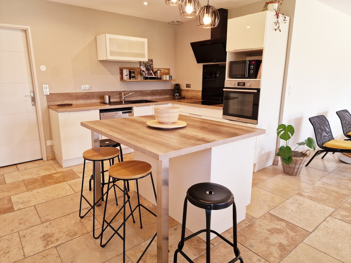 Vila rejuvenescedora no campo, 140 m2 com todas as comodidades e não negligenciada. Terraço relaxante e sombreado com acesso a um jardim muito grande de 4.000 m² com vista para os Alpilles. Cozinha espaçosa e funcional com vista para uma grande sala de estar. A casa tem 3 quartos: - um quarto com duas pessoas dormindo - uma grande suíte master com banheiro privativo - Um quarto 2 camas de solteiro Um banheiro extra e UM lavabo separado do banheiro