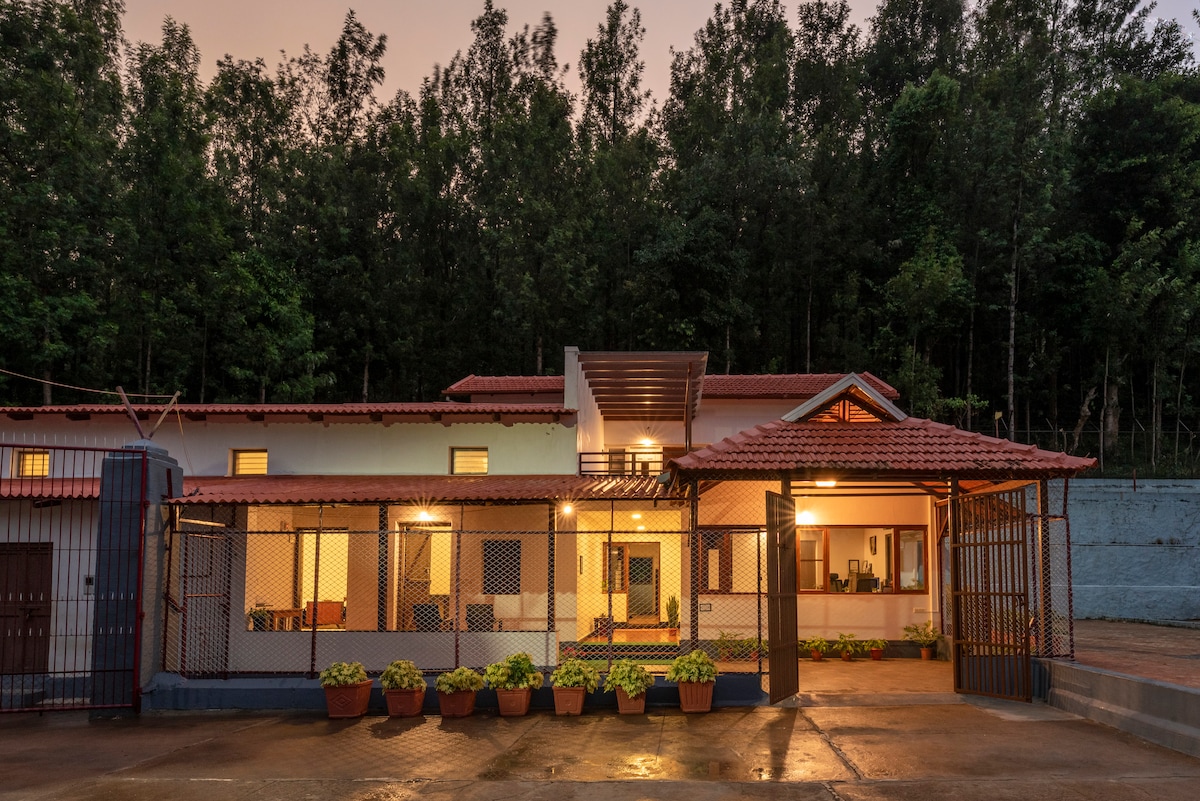 Fuja para Hoovina Mane Homestay, um refúgio tranquilo no coração de uma exuberante propriedade de café em Heggaravalli, Sakleshpur. Aproveite uma estadia exclusiva com seu grupo, sem outros hóspedes! Esta vila completa oferece 5 quartos aconchegantes, 4 banheiros, deliciosas refeições caseiras, um jardim e atividades divertidas como fogueira, voleibol, badminton e visitas ao rio Hemavathi. Cachoeiras, pontos de vista e pontos de trilha estão nas proximidades. Perfeito para famílias, amigos e retiros corporativos que buscam natureza, privacidade e relaxamento.