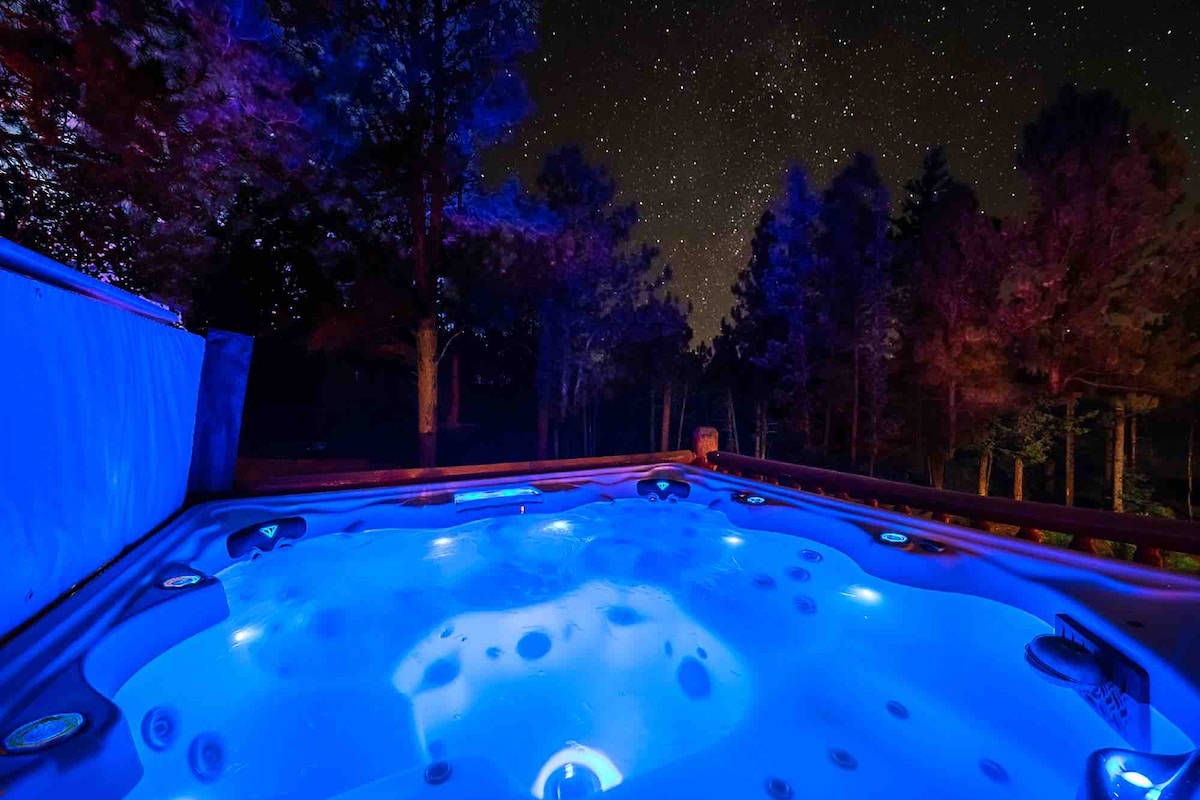 A Cabana Black Ridge - Sua escapada aconchegante na montanha! 🗻Localizada na DESLUMBRANTE região de Pikes Peak, no Colorado 🛏️ Aconchegante 2BR com camas queen em 1 acre privado 🌌 Banheira de hidromassagem isolada sob as estrelas Lareira 🔥 interna + Wi-Fi rápido via Starlink 🍳 Cozinha abastecida + máquina de lavar/secar 🌲Perto de trilhas de caminhada e acesso à encosta com quintal cercado A 🚗 20 minutos de Woodland Park, a 2 horas do Aeroporto Internacional de Denver 🚶♂️ Caminhe até o pitoresco Reservatório Burgess (sem acesso ao lago) 🔥 Lareira, jantar ao ar livre, vista para a floresta 🅿️ Estacionamento coberto na entrada da residência