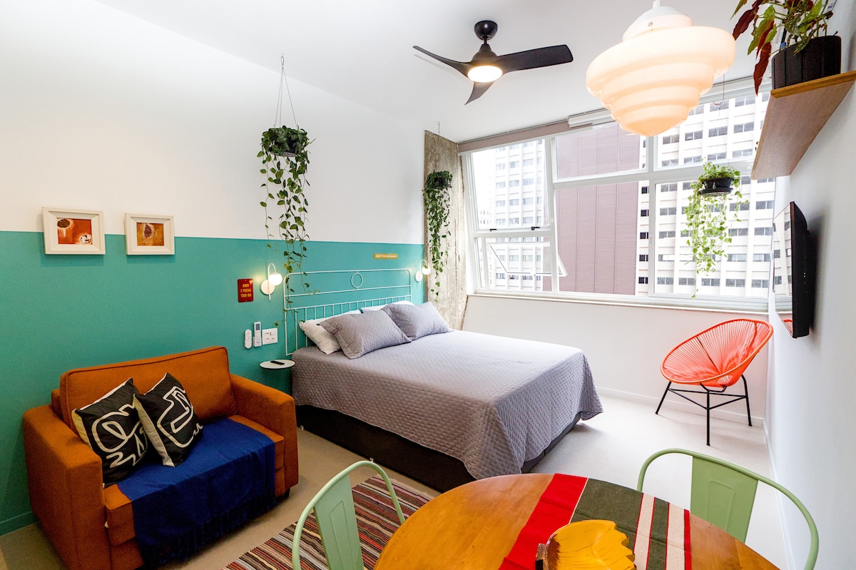 ✨ Studio queridinho no Centro do Rio, perfeito pra relaxar ou trabalhar com estilo! Piscina na cobertura com vista linda, Wi-Fi turbo, Netflix, cozinha equipada, ar-condicionado, cama confortável + puff individual, espaço de home office. A 5 min do Museu do Amanhã, metrô e VLT. Promo de abril: check-out estendido com maleiro + day use no Casa Mauá (consulte). Oferecemos uma estadia acolhedora, atenta aos detalhes e com dicas locais exclusivas pra você aproveitar o melhor do Rio 💛