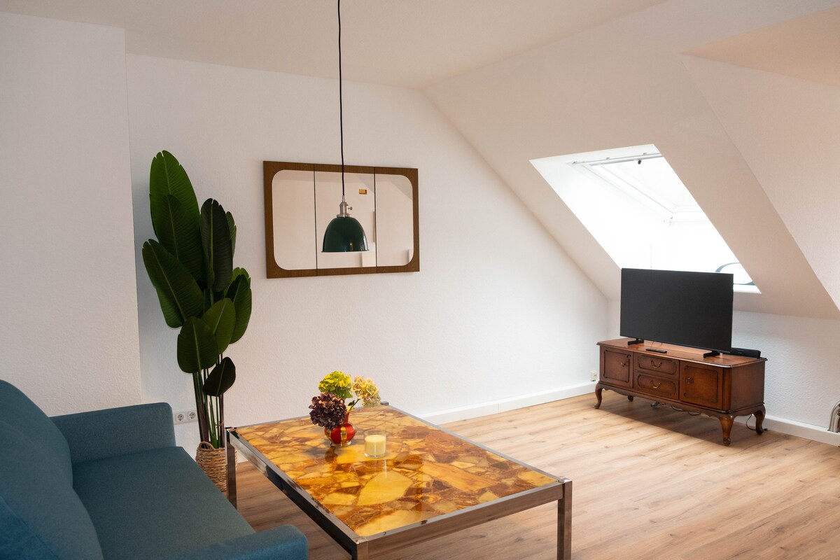 O apartamento é bem iluminado e agradável, localizado na bela e tranquila região de Mädchenviertel, em Rüttenscheid. A feira de Essen e o Museu Folkwang estão a 5 minutos a pé. Nas imediações, o "Rü" atrai com sua ampla variedade de restaurantes, bares e clubes – há algo para todos. Apesar da agitação noturna no fim de semana na "Rü", o estúdio é muito tranquilo e você mal acredita que está morando no meio da ação.