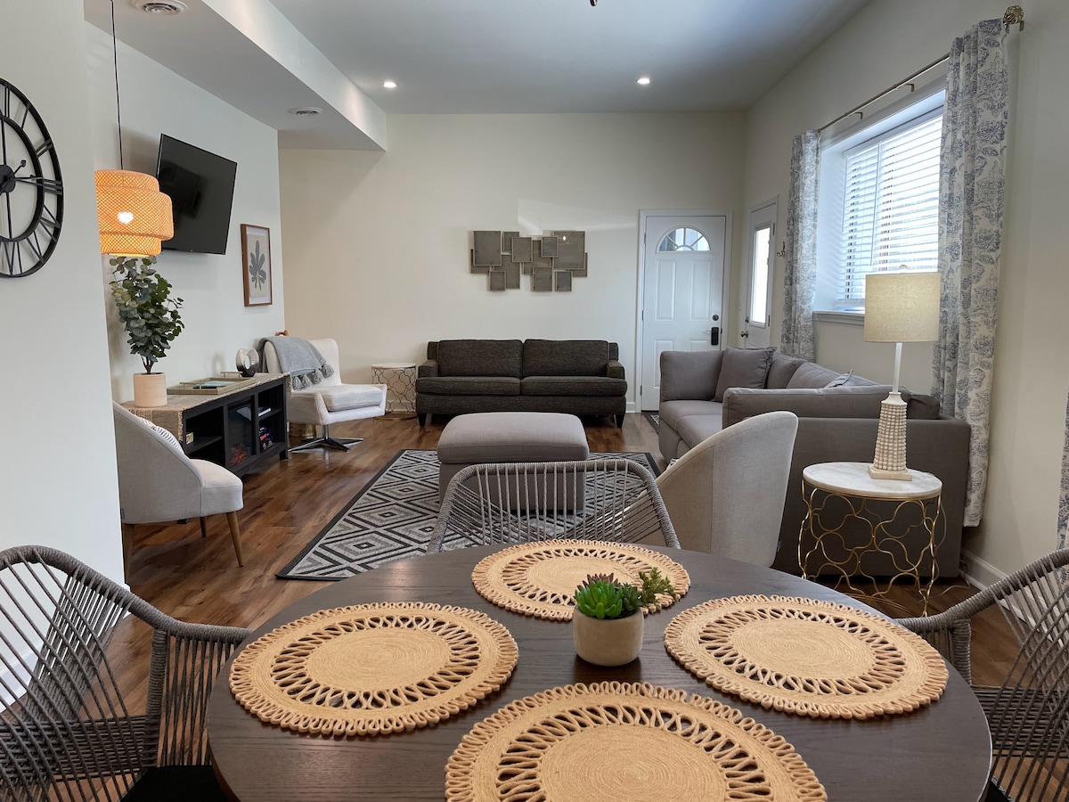 Apartamento elegante e privativo de 1 quarto perto da Universidade de Belmont. Perfeito para 2 a 4 hóspedes, este retiro dispõe de uma cama king size, sofá-cama king size, pátio privativo e comodidades modernas. Desfrute de um bairro altamente acessível com Wi-Fi 1G, uma Smart TV e um toca-discos. Sua base perfeita em Nashville!
