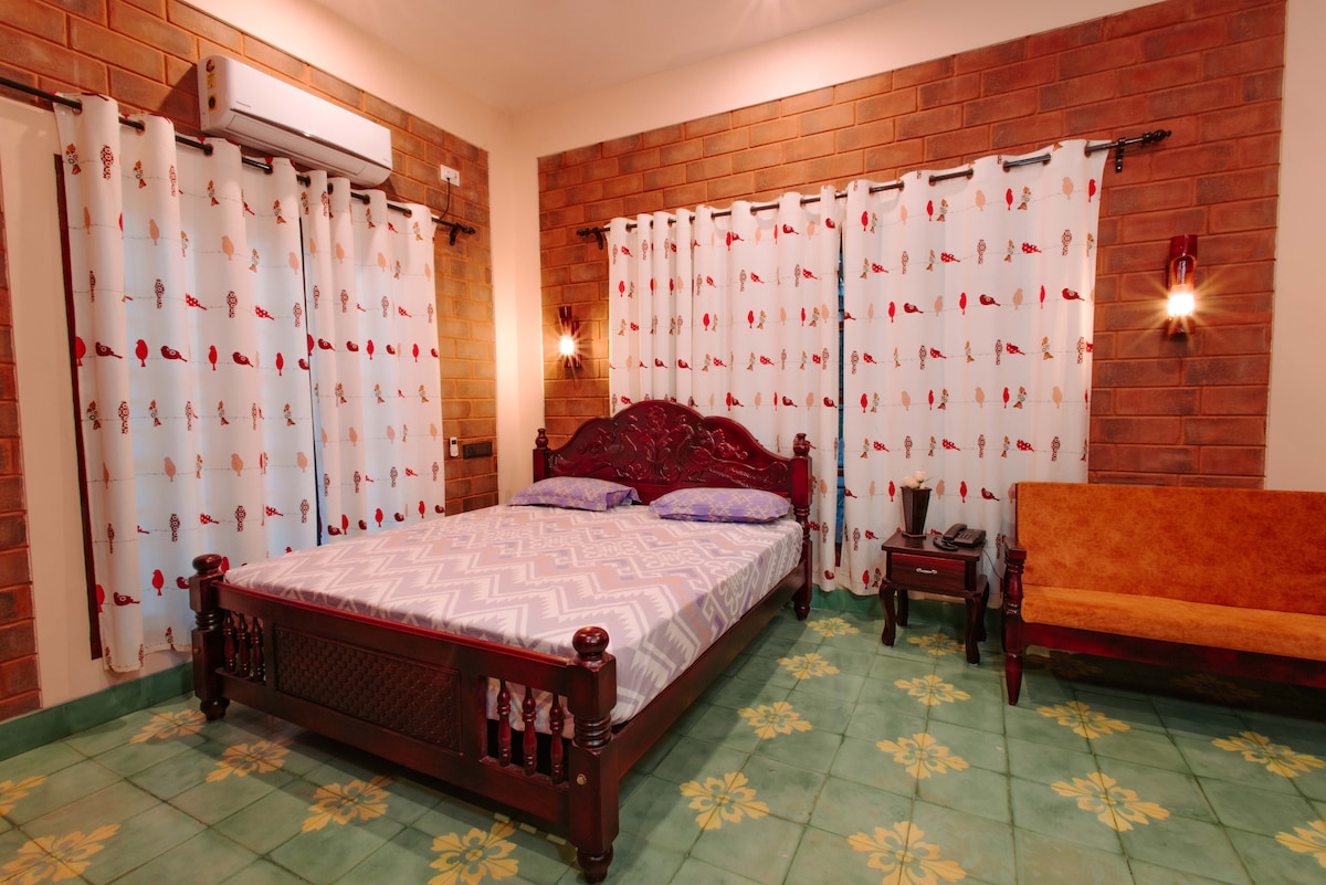 No Vellayani Bungalow, oferecemos um espaço 4BHK sereno e espaçoso com varandas privadas e um pátio encantador com vista para um jardim de pomar. Acorde com o som dos pássaros tropicais e desfrute de um dia repleto de passeios tranquilos ao longo do lago, encontre o local de pesca perfeito e explore os cafés locais de frutos do mar. O espaço é ideal para relaxar e se reunir com amigos e famílias. Temos proximidade com o Lago Vellayani, Kovalam e Vizhinjam Beach.