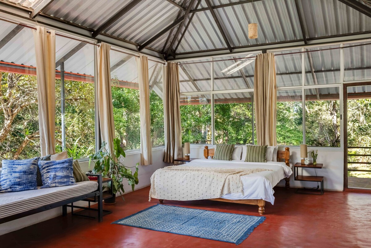 A Kariya Villa leva seu nome da lendária pantera negra que percorre o santuário e, como se seu homônimo fosse elegante e se mistura inatamente com seu ambiente natural. Interiores espaçosos e confortáveis com seu quarto de teto alto e área de estar se abre para um deck de madeira amplo com piscina privada. A vila tem a opção de converter a sala de estar em um quarto separado com seu banheiro privativo, oferece um refúgio perfeito, os hóspedes podem relaxar e se conectar à natureza selvagem.