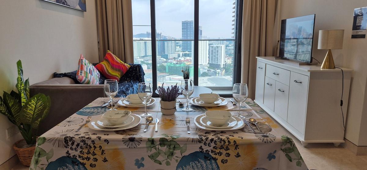 Bem-vindo ao nosso charmoso apartamento de 2 quartos! Nosso apartamento está localizado na área mais vibrante e rica em patrimônio de Bukit Bintang, KL, onde você pode encontrar comida, compras, passeios turísticos e vida noturna de classe mundial. O interior dispõe de 2 quartos, 2 banheiros, uma cozinha totalmente equipada, uma área de estar e uma bela varanda no último andar com vistas deslumbrantes do horizonte da cidade. Seja viajando a negócios ou a lazer, nosso apartamento é a base perfeita para explorar tudo o que KL tem a oferecer.