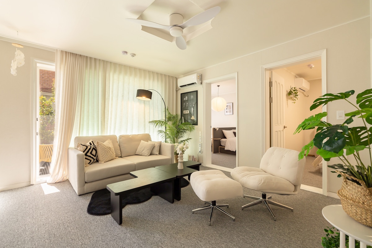 WEZIP-J é uma casa privada aconchegante em Gyeongnidan-gil de Itaewon com uma vista deslumbrante do terraço de Namsan. O interior acolhedor parece um lar, enquanto a localização oferece acesso fácil aos principais pontos de Seul — Myeong-dong, Hongdae, Gangnam, Namdaemun, Dongdaemun e Insadong. Desfrute de cafés modernos, lojas exclusivas e vida noturna vibrante nas proximidades, mas retorne a um bairro tranquilo para um descanso tranquilo. Perfeito para casais, famílias ou amigos que procuram energia da cidade e conforto privado.