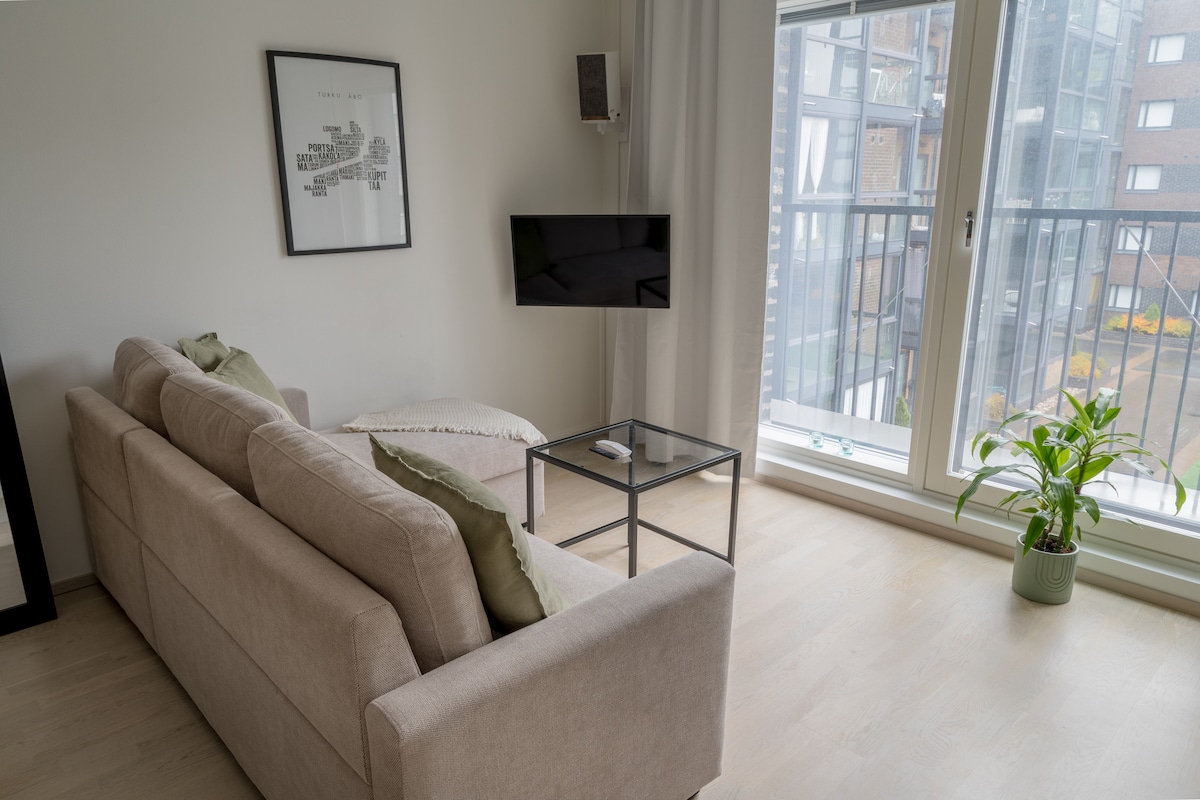 Perto da área do Castelo de Turku chamado "Linnanfaltti" Eu tenho este apartamento de 38m3. O apartamento tem tudo o que você precisa para uma visita curta ou uma estadia mais longa, uma cozinha totalmente equipada, banheiro,quarto/sala de estar. O acesso à Internet sem fio manterá você conectado durante sua viagem. Do aeroporto você pode pegar o ônibus nº 1. Ele levará você ao lado do prédio. A apenas 200 m a pé da paragem de autocarro "Veistämöntori" Ônibus saindo do aeroporto a cada 15 minutos e levará cerca de 35 min.