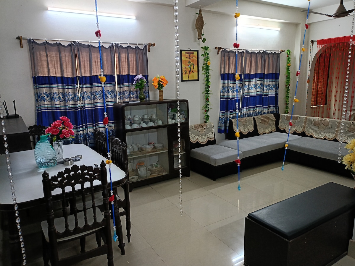 Vasudhaiva Kutumbakam my Guest. Take it easy at my unique and tranquil home, situated just 10-15 minutes away from Kolkata Airport. Restful & cozy home, ideal for couples and working professional who are looking for peaceful stay with full privacy. It is also divyang and old person friendly as there are no stairs to the home. Laced with amenities, a separate housing unit of 350 sq ft livable area, located at the backyard of a two storey home, with full privacy to create memories and more.