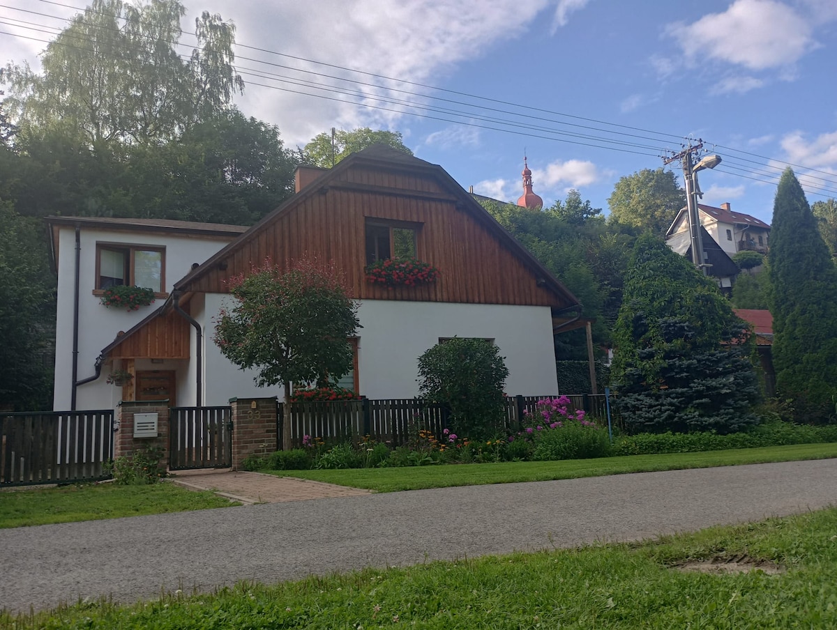 Vai viajar para Adrspach, Broumov ou para a fronteira polonesa? Somos o ponto de partida perfeito para suas aventuras! Oferecemos um apartamento no primeiro andar com uma espaçosa cozinha equipada, incluindo geladeira, máquina de lavar louça, micro-ondas, fogão de indução e forno. Em seguida, no apartamento, você encontrará um banheiro elegante com chuveiro e vaso sanitário. O coração do apartamento é uma grande sala de estar com um fogão a lenha e um sofá-cama. Sono repousante em um quarto separado em uma cama de 140 cm de largura. Oferecemos uma mesa de pebolim e uma seleção de vinhos da sua própria loja de vinhos.