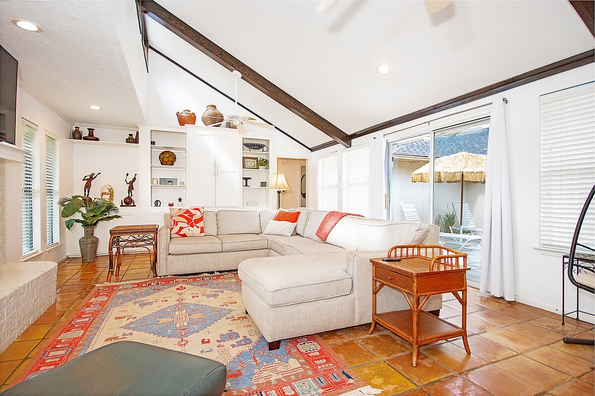 Condomínio de dois quartos e dois banheiros. Dois grandes closets. Cozinha completa/sala de jantar, máquina de lavar/secar. Tudo fornecido para estadias de curta duração. Piscina no local. Há canais locais, YouTube TV, NFL, CNN, Fox News e muitos outros programas ao vivo disponíveis através da televisão inteligente ROKU. Há uma cafeteira Keurig de dose única. Fique à vontade para acessar qualquer serviço de streaming usando sua própria conta.