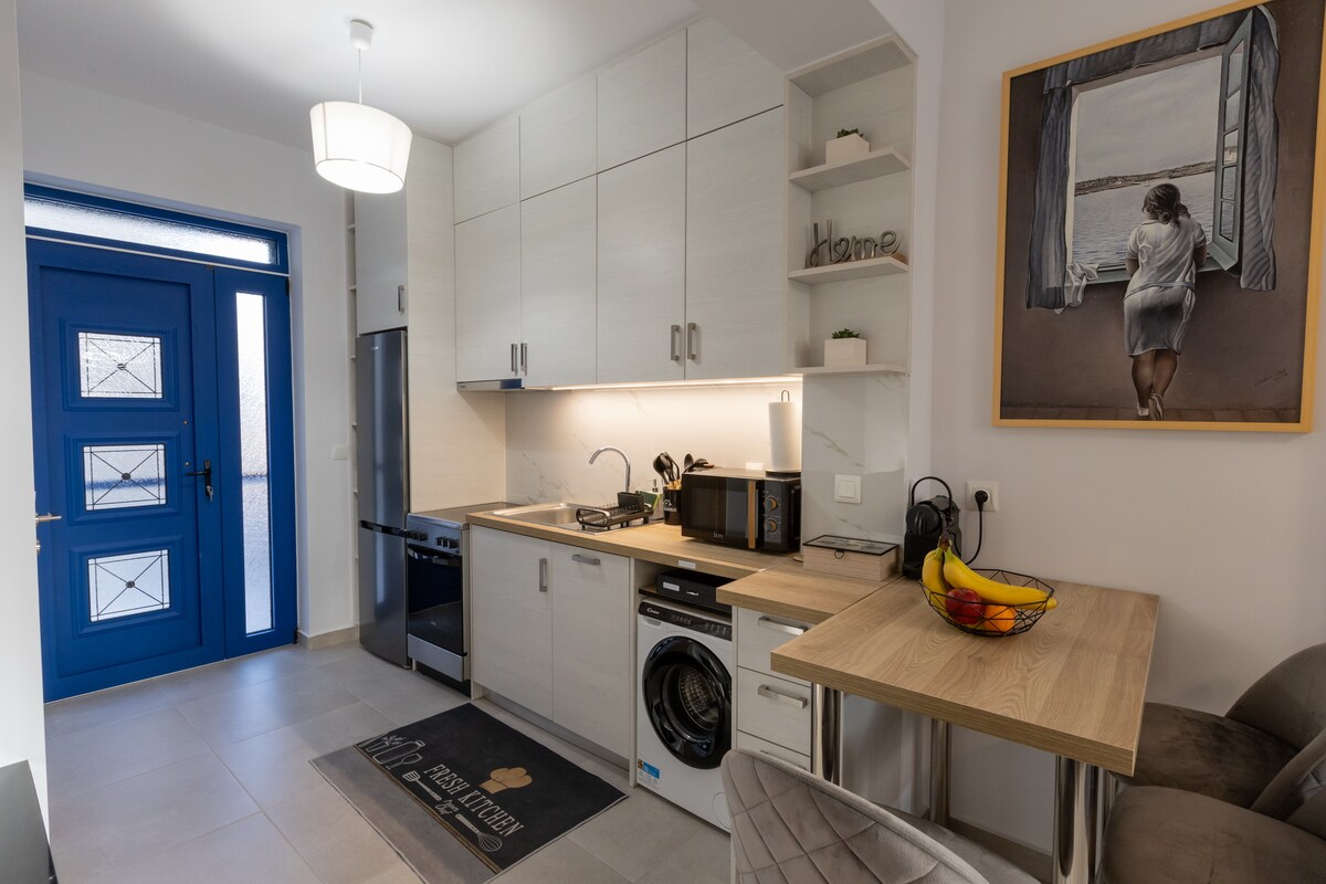 Apartamento moderno, confortável e tranquilo no coração da cidade a poucos minutos a pé de todos os pontos de interesse (porto veneziano 6', praia de Psani 8', praia de Grivovo 5'). Acomoda confortavelmente até 4 hóspedes. Ideal para famílias e grupos de viajantes. Tem excelente insonorização, bem como um jardim para momentos de relaxamento. Outras comodidades: Ar condicionado, bomba de calor, duas camas de casal queen-size e sofá-cama – cama, cozinha totalmente equipada, máquina de lavar roupa, Wi-Fi