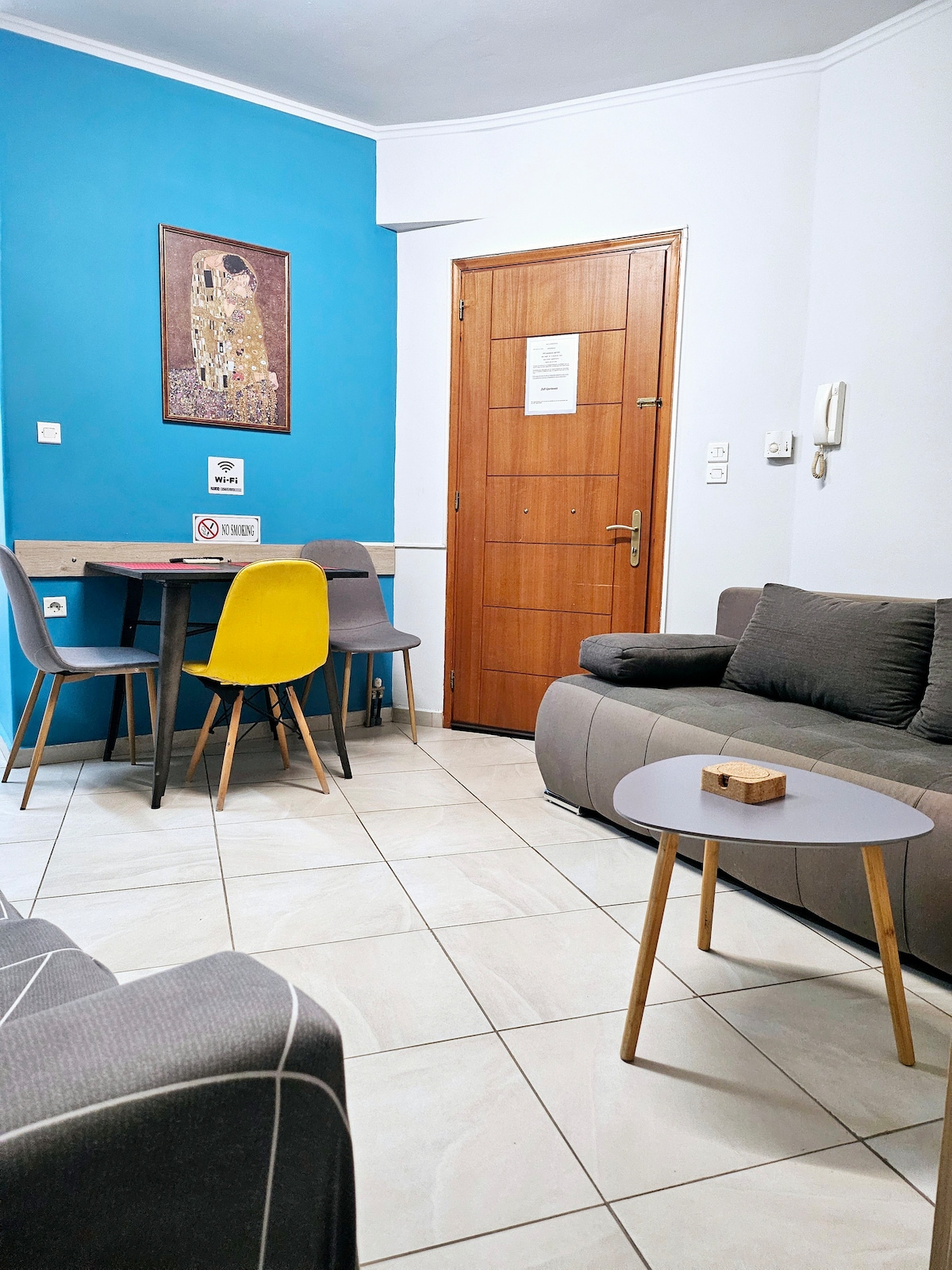 Espaço acolhedor e acolhedor numa área tranquila, a apenas 50 metros do antigo TEI da Grécia Ocidental. Perto da saída 3 do perímetro de Patras. Facilidade de estacionamento. A 50m dos Supermercados. Próximo ao ponto de ônibus (linhas 2,8).