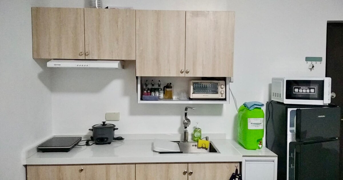 Confira a vibe e aproveite sua estadia nesta unidade de condomínio de 1 quarto recém-renovada localizada no 4º andar da Residencia Magayon, cercada por um marco famoso na cidade de Naga, como Mother Seton Hospital, MPlaza, Robinson's Mall, S&R, Landers e outros ótimos lugares. A unidade pode acomodar confortavelmente apenas 4 hóspedes.