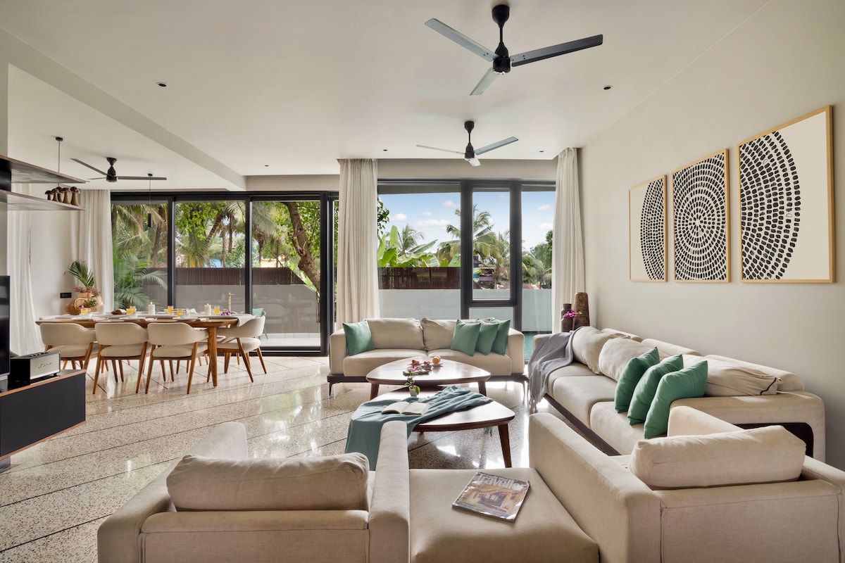 Set close to popular spots like Ooh La La, Cajy’s Bar, and Salt, this 3-BHK villa in Goa blends comfort with charm. Spacious bedrooms with ensuite baths and balconies offer restful views, while the living room opens to a private pool and patio. A modern kitchen with chef-on-call adds ease, and the dining space brings everyone together. With a lush garden, terrace seating, and stylish details throughout, it’s a retreat that balances tranquillity with easy access to Goa’s vibrant scene.