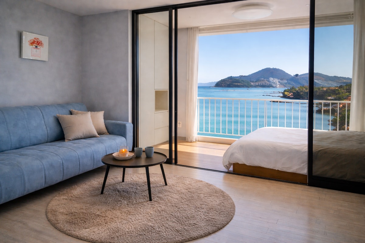 #Restaurante com vista para o mar de Namhae/2 minutos da vila alemã/Cama para 4 pessoas/2º andar inteiro/Sala Haoreum